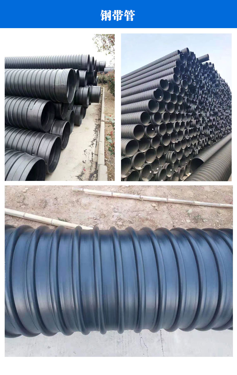 鋼帶管也稱埋地排水用鋼帶增強(qiáng)聚乙烯(HDPE)螺旋波紋管,是一種新型塑料埋地排水管。該產(chǎn)品用連續(xù)鋼帶壓成近似^形的螺旋鋼肋纏繞在內(nèi)外兩層熱熔接的聚乙烯間,把鋼材的高鋼度、